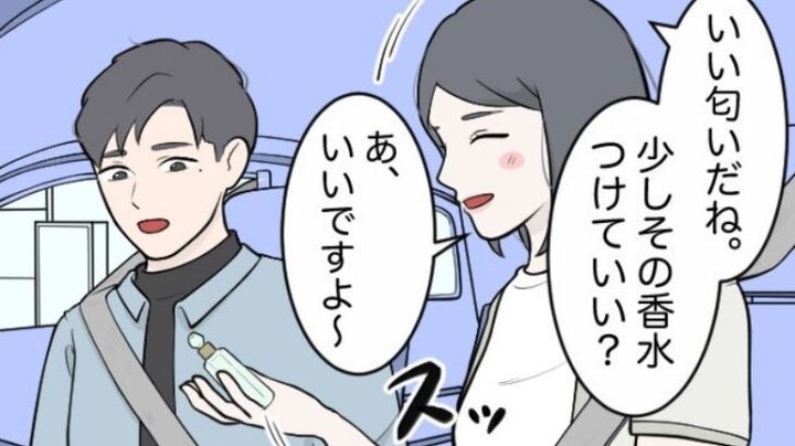 しかし、その帰りに彼の車で自宅近くまで送ってもらった際に衝撃の出来事が。彼が私のつけていた香水の香りを褒めてくれました。お気に入りの香水だったのでうれしく、彼の「その香水、少しつけてもいい?」という言葉に喜んで香水を渡すと……。なんと彼は車の中、全体に香水をプッシュしまくったのです。