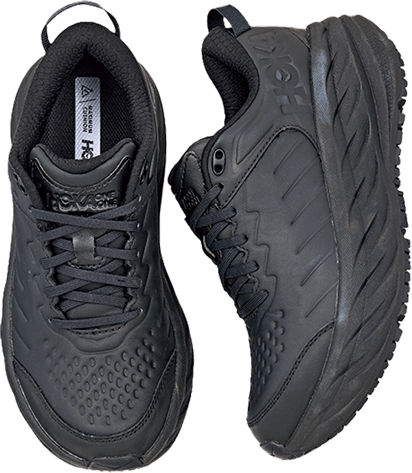 撮影で実際にはいた游も「欲しい!」となったこちら。マットなオールブラックはオフィスにも対応。[BONDI SR]¥27,500(ホカ®/デッカーズジャパン)