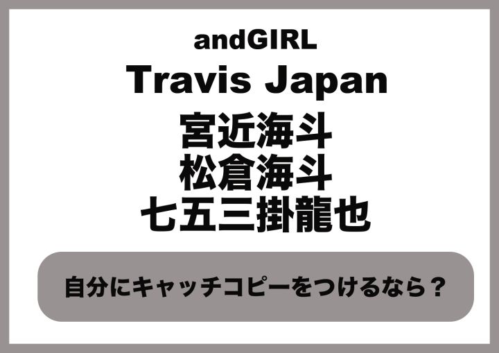 【宮近海斗・松倉海斗・七五三掛龍也(Travis Japan)】に質問!自分にキャッチコピーをつけるなら?