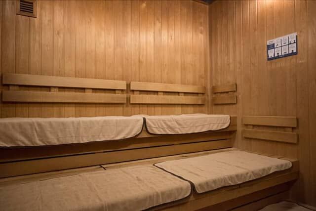 ドライサウナは6人ほどがゆったり入れる広さ。設定温度は95度ほどで、しっかり汗をかくことができました。