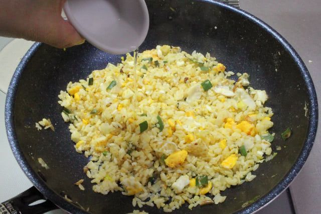 ご飯ひと粒ひと粒に、卵液をまとわせるのがポイント。焼いた時に卵が先に固まり、ご飯がくっつかず、パラパラの炒飯になりますよ。