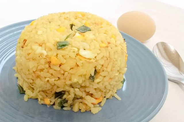 目玉焼きの底の焼き色が薄かったようで、香ばしさはそれほど感じませんでした。けれど、長ねぎのシャキシャキとした食感と卵のやさしい味わいが広がり、マイルドな味わいの「卵チャーハン」に仕上がっています。味付けはかなりシンプルなので、最後にゴマ油を少し回しかけて仕上げても、よさそうだなと感じました。