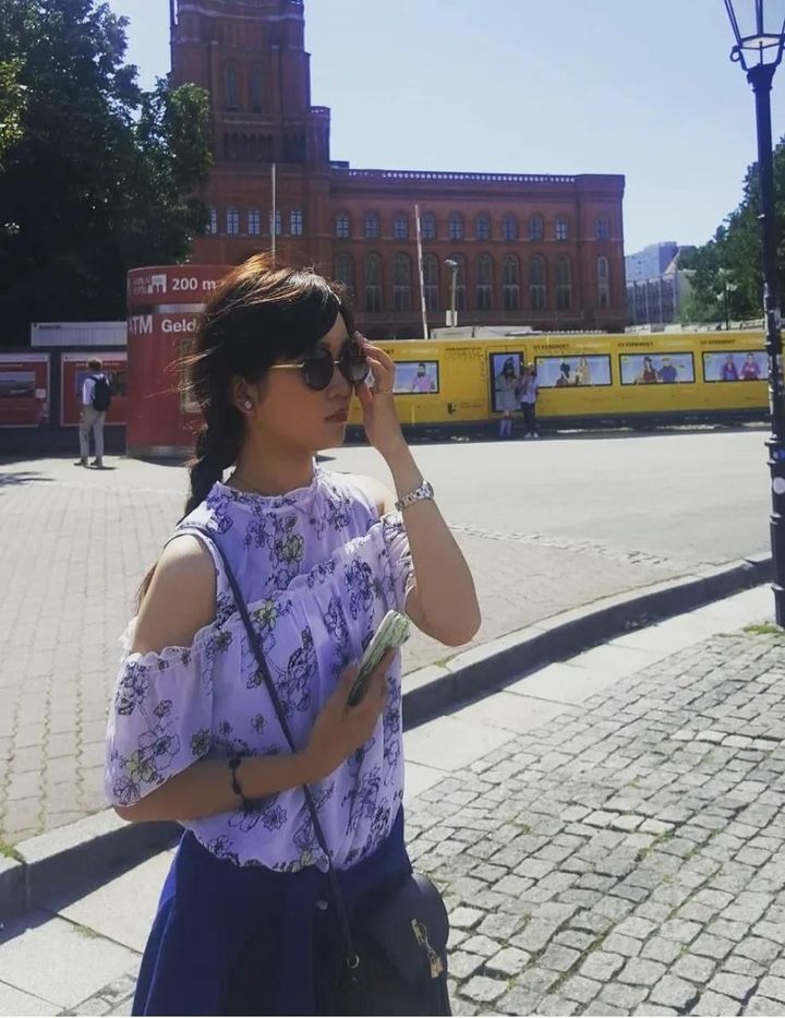 約9年前の留学時代、ドイツ旅行中のわたし。ヘアスタイルもファッションも思いっきり楽しんでいました