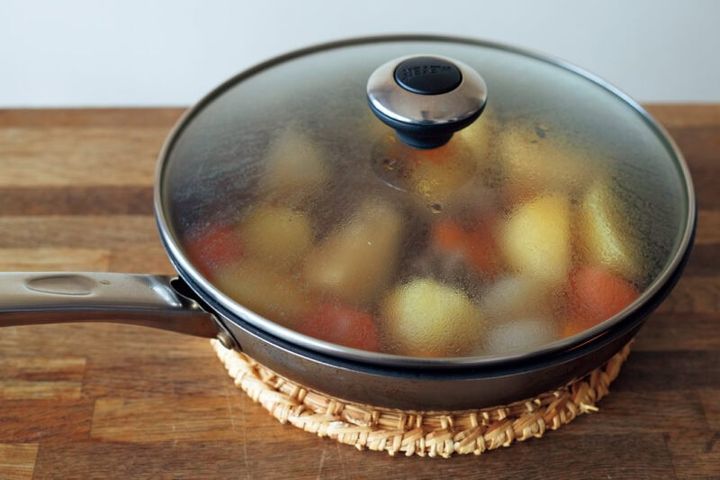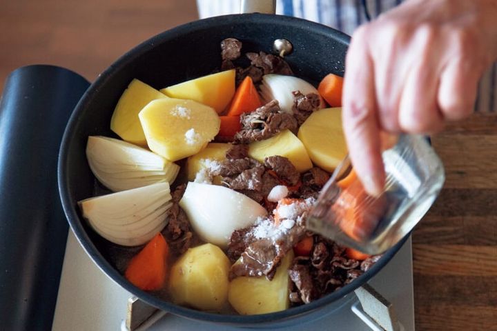 「肉じゃがの場合は、野菜の水分が出てくるので、加える水分量は少なめにしています。水分が多いと塩分も多くなりますから」
