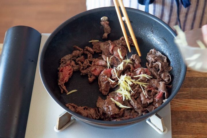 肉の色が変わったらしょうがを加える