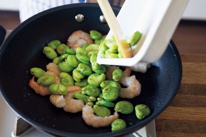 そら豆とえびの塩炒め