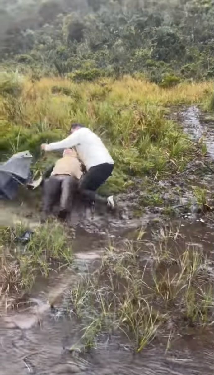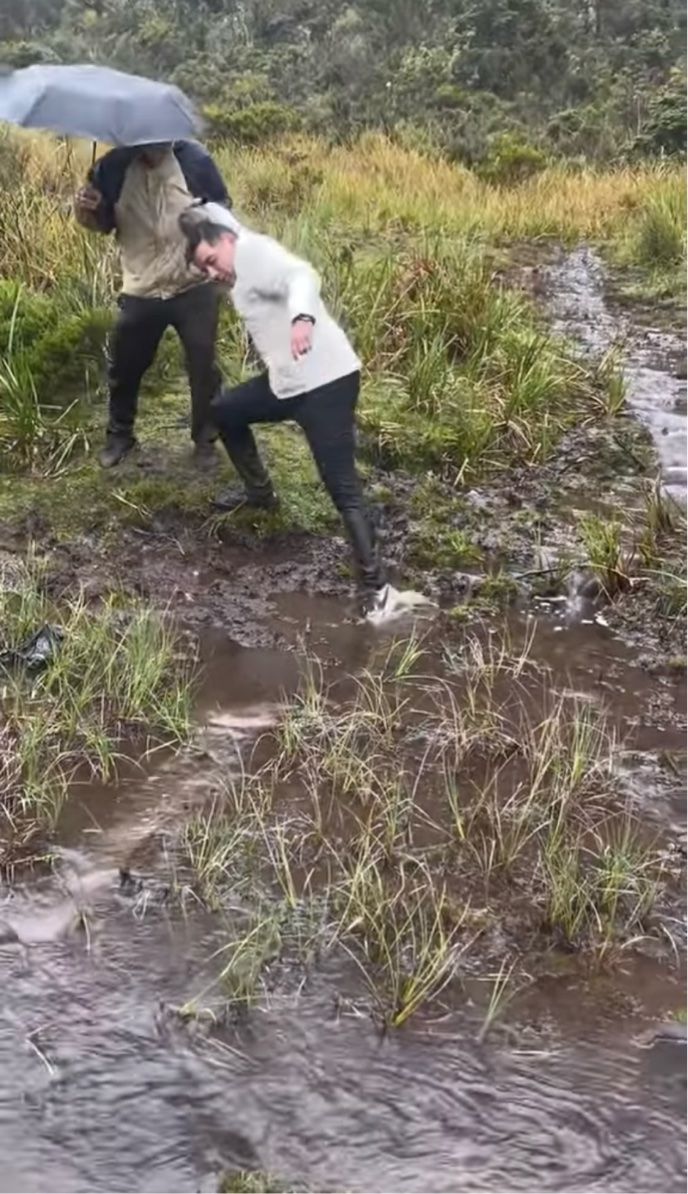 3. ちょっとした水たまりだと思ったら・・!?軽い気持ちで足を踏み入れた男性たちは大慌て!!【海外・動画】