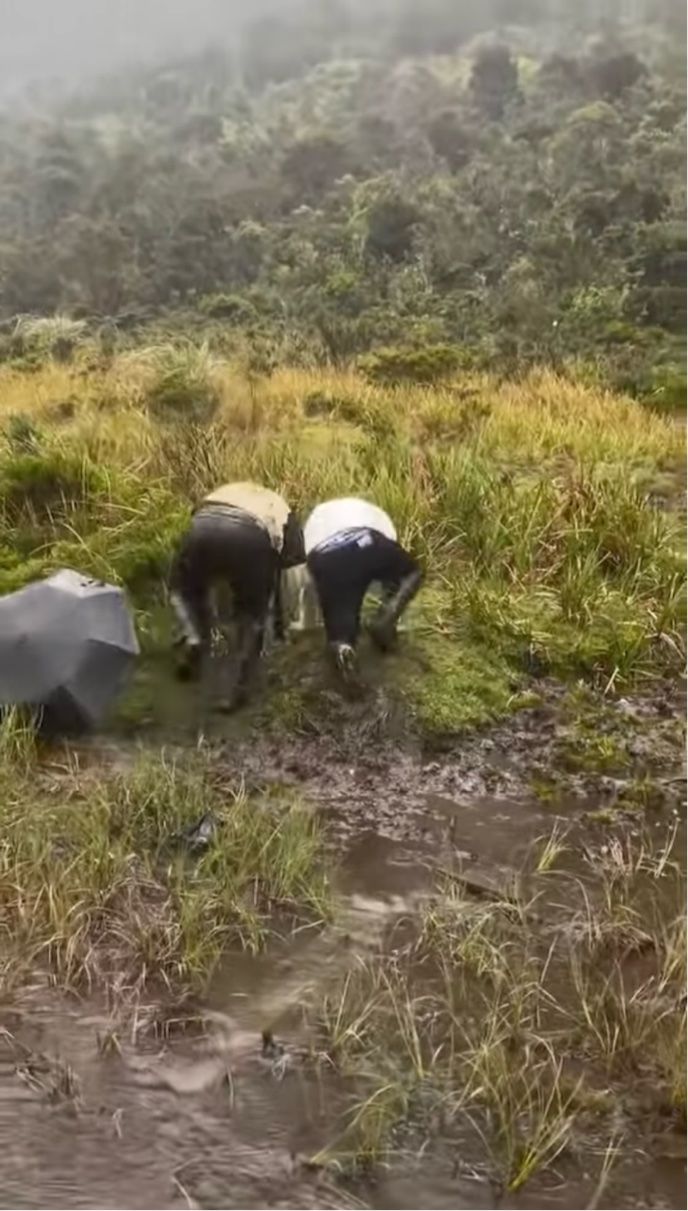ちょっとした浅い水たまりかと思いきや、実はかなりの深さがあったようです! 足がどんどん沈んでいきます。