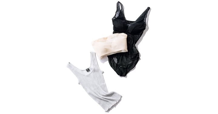 水分を多く含んだナイロンで抜群の着心地。カップサイズ展開も豊富です。ブリファー¥11,000チューブトップ¥5,500(ともにナイスナイス モーメント/ショールームリンクス)