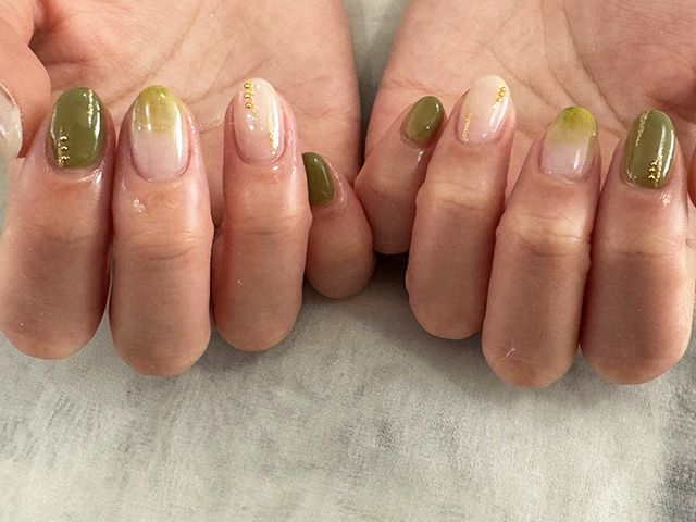 グラデーションとの相性バッチリ!落ち着いたピスタチオカラーで印象的な指先に