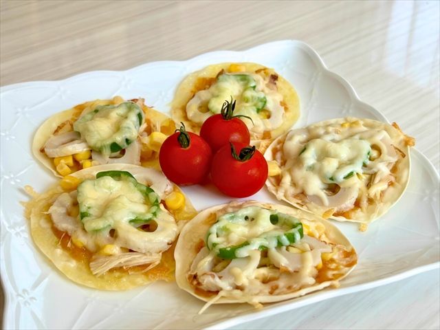 サクサクの餃子の皮とビタミンちくわの絶妙な組み合わせで、簡単においしいピザ風おつまみが作れました! おやつや軽食として、またパーティーにもぴったりの一品です。