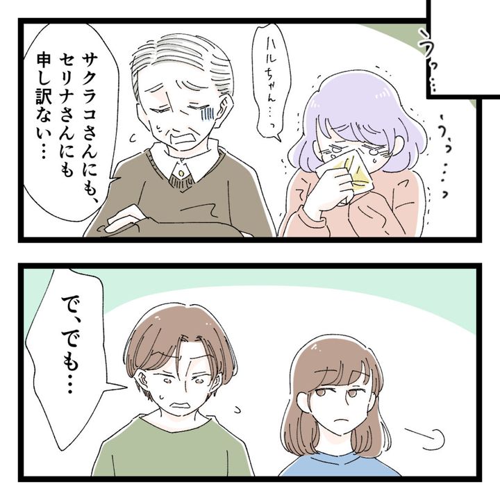 全ての話を聞いたお父さん「サクラコさんにも、セリナさんにも申し訳ない・・」と言い、お母さんはというと、「ハルちゃん・・うぅっ・・」と泣き出してしまいました。