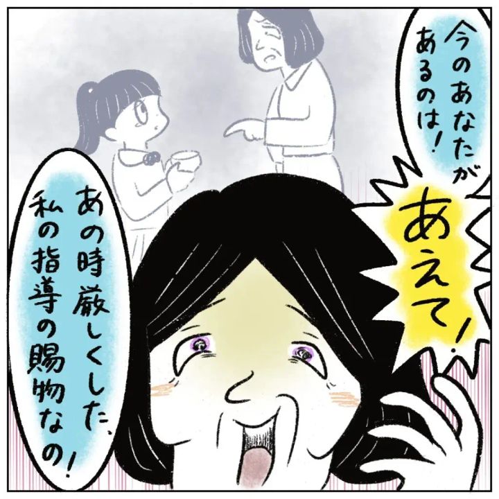 「今のあなたがあるのは!あえて!あの時厳しくした、私の指導の賜物なの!」と自分がこれまで行ってきた酷い仕打ちをなかったことにする性根先生。
