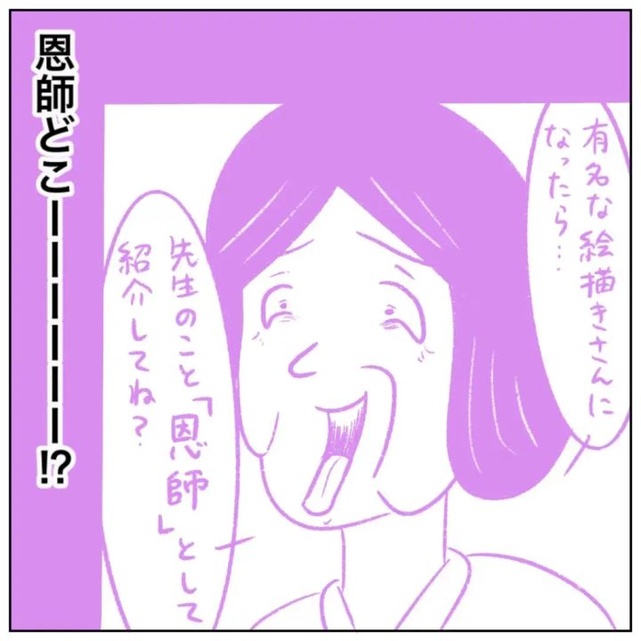 「有名な絵描きさんになったら・・先生のこと『恩師』として紹介してね?」ニヤリと笑いながら性根先生が言うのを見て、「恩師どこーーーー!?」と思うまるさん。