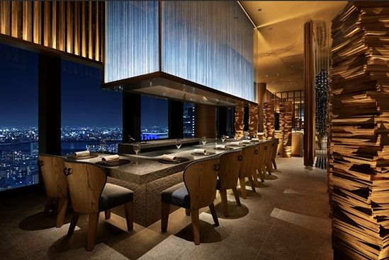 「月見(Tsukimi)」は、自然素材をデザインに用いた静謐な空間で鉄板焼きと寿司を堪能できるシグネチャーレストラン。大きな窓に面したカウンター席では、目利きの寿司職人が仕入れた最高のネタによる熟練の技を眺めながら、五感を満たす美しい鮨をいただけます。また、鉄板焼カウンターでは、35か月以上長期飼育した但馬牛を使用し、低温調理や炭火を取り入れた独創的なスタイルで提供。季節ごとの最上級食材を活かした「おまかせ」コースで、職人の創意が光る料理の数々を堪能できます。