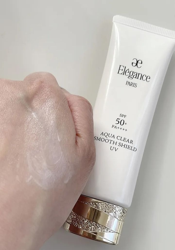 とにかくなめらかな感触! 伸ばすと白くならずにみずみずしく広がり、そのつけ心地にうっとりします。しかも耐水性があるので顔だけでなくボディに付けても頼りになるUVです⭐︎