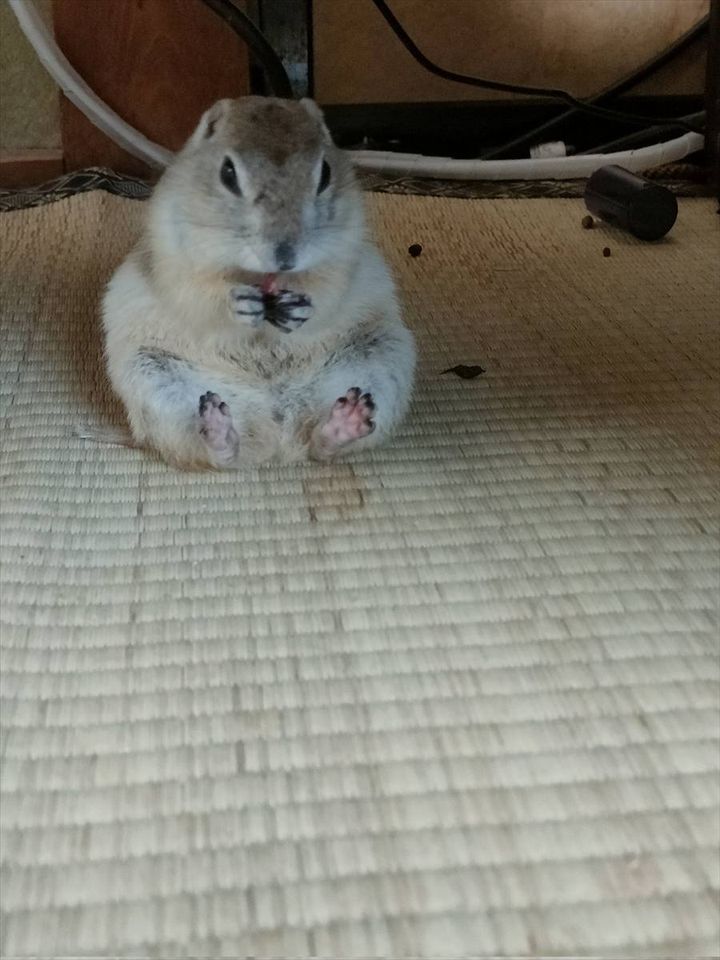 お行儀よく座り、隠したおやつの続きを食べていたというのは、リチャードソンジリスの『ゆず』ちゃん。 飼い主さんによると、「ここに隠れるのはいつものことなんですが、なんかかわいいことになっていた」とのこと。