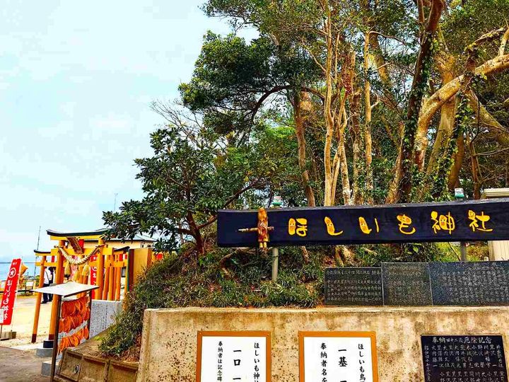 海側の開けた場所に建立された「ほしいも神社」。「干し芋」と「欲しいもの」をかけ、「(参拝者の)『ほしいもの』がすべて手に入りますように」という思いと、「干し芋を通して生産者や町が受けた恩恵や、今後も末永く干し芋作りが続くように」という願いが込められた新しい神社です。