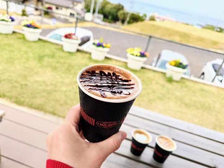 ドリンクには、茨城県ひたちなか市に本店がある高品質なコーヒー豆と焙煎にこだわる「SAZA COFFEE(サザコーヒー)」を使っています。参拝者も「サザコーヒーだ!」と喜んでいました。