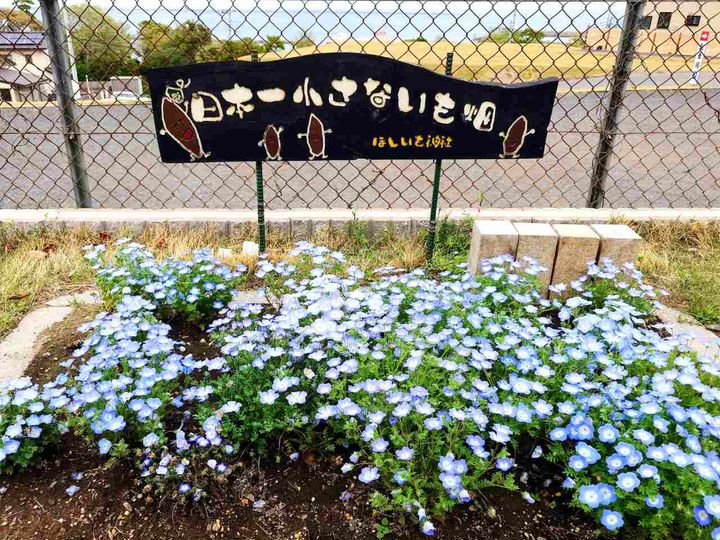 鳥居の奥には「日本一小さないも畑」も。訪れた2024年春には、青くて可愛らしいネモフィラが咲き誇っていましたが、6月からはサツマイモの苗が植えられます。