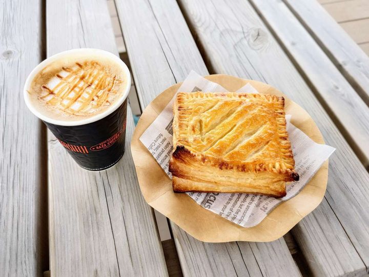 素材の甘みが広がるお芋のペーストと、濃厚なカスタードクリームがたっぷり入っていて、パイ生地はサクサクで香ばしい。1個は手のひらほどの大きめのサイズで、食べ応え満点です!