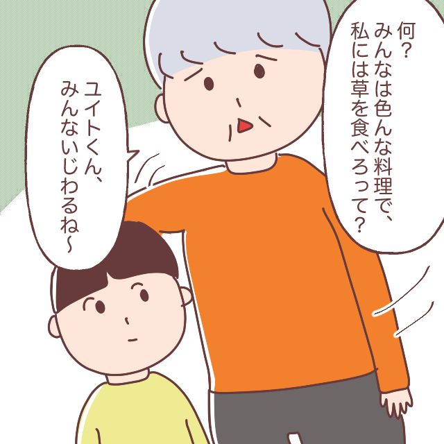 「私はママに特別なことを何もしてもらったことがない」と呟く義母に、「母さん、キョウコの誕生日とかに何かしたことないだろ?」見かねた夫が怒り出しその場は終了。その後、「ママ~からあげ食べたいな~」とユイトくん言い、「たくさんあるからゆっくり食べてね」と声をかけました。すると、「ねえ、キョウコさん、私が食べられるものがないんだけど?」のうのうと言う義母に、「お義母さんの好きなものなかったですか?」とたずねると、「食べるものたくさんあるじゃん。何が食べられないんだよ」と夫。「ムリよぉ~。私にはムリ」と言った後、「ひどいわよねぇ~、ママとパパ・・おばあちゃんにはなーんにも食べるもの準備してくれないの」ため息をつきながら私と夫の文句をつらつらと話す義母。話を聞かされていたユイトは、何が起きていたのか全くわからず、頭の中は「?」でいっぱいでした。