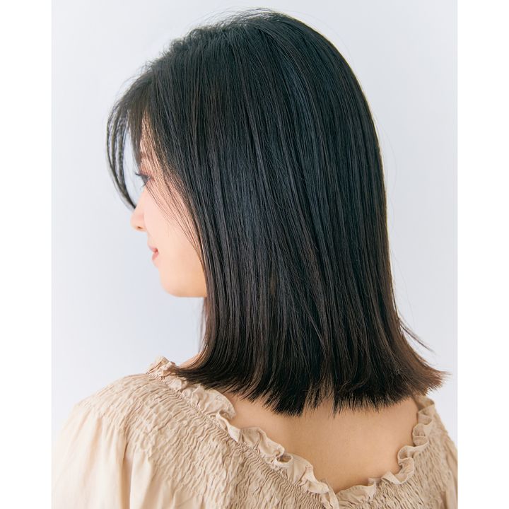 前髪は生え際から3cmくらいで厚めに取り、リップくらいの長めでカット。いつもと逆に分けたら、毛先に軽くレイヤーを入れてサイドに流れやすくします。逆サイド流しバングはボリューム感があるので、全体はストレートな質感にしてバランスを取ることが大切。毛先を少しハネさせて動きをプラスするのがおすすめです。(担当:Tierra 美侑さん)