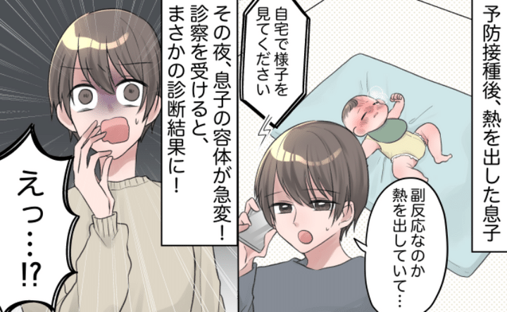 生後4カ月の息子が予防接種を受けたときのことです。予防接種を受けた後、熱を出してしまいました。心配だったので病院へ電話すると、「様子見でいい」と言われたため、自宅で様子を見ることに。しかし夜になると、息子の容体が驚くほど急変してしまったのです。