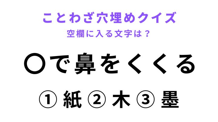 3. 【〇で鼻をくくる】空欄に文字を入れてことわざを完成させて!