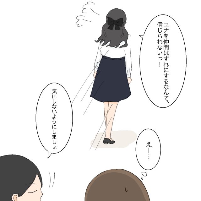 私とともか先輩の対応が気に入らなかったのか、足立さんは「ユナを仲間はずれにするなんて、信じられないっ!」と怒りながら行ってしまいました。内心「えー・・」とドン引きしていた私に、ともか先輩が「気にしないようにしましょ」と声をかけてくれました。