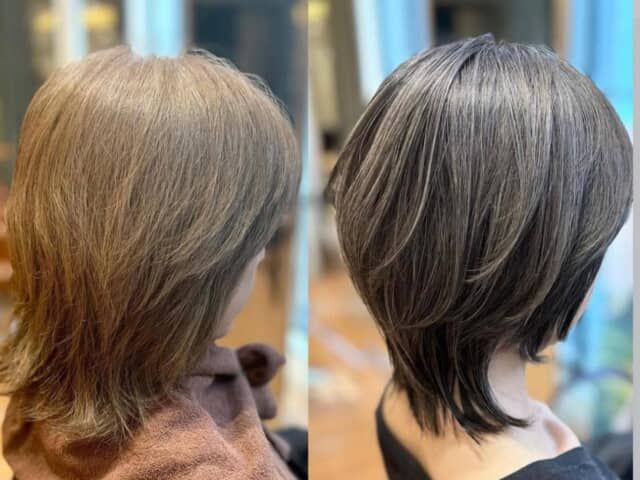 全体を単色で染めるより、白髪ぼかしや細めのハイライトを入れることで、髪に動きと軽やかさが生まれます。