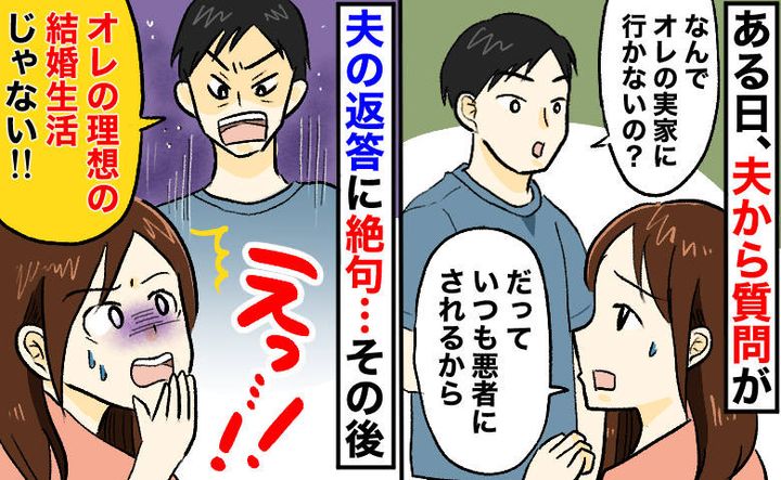 先月、夫から「もう俺の実家には行かないの?」と言われました。私は「私のことを悪者にして、ひどいことを言ってくる人たちに会いたくない」と正直に答えました。すると夫は、「それは俺の理想とする結婚生活じゃない!」と怒り出したのです。
