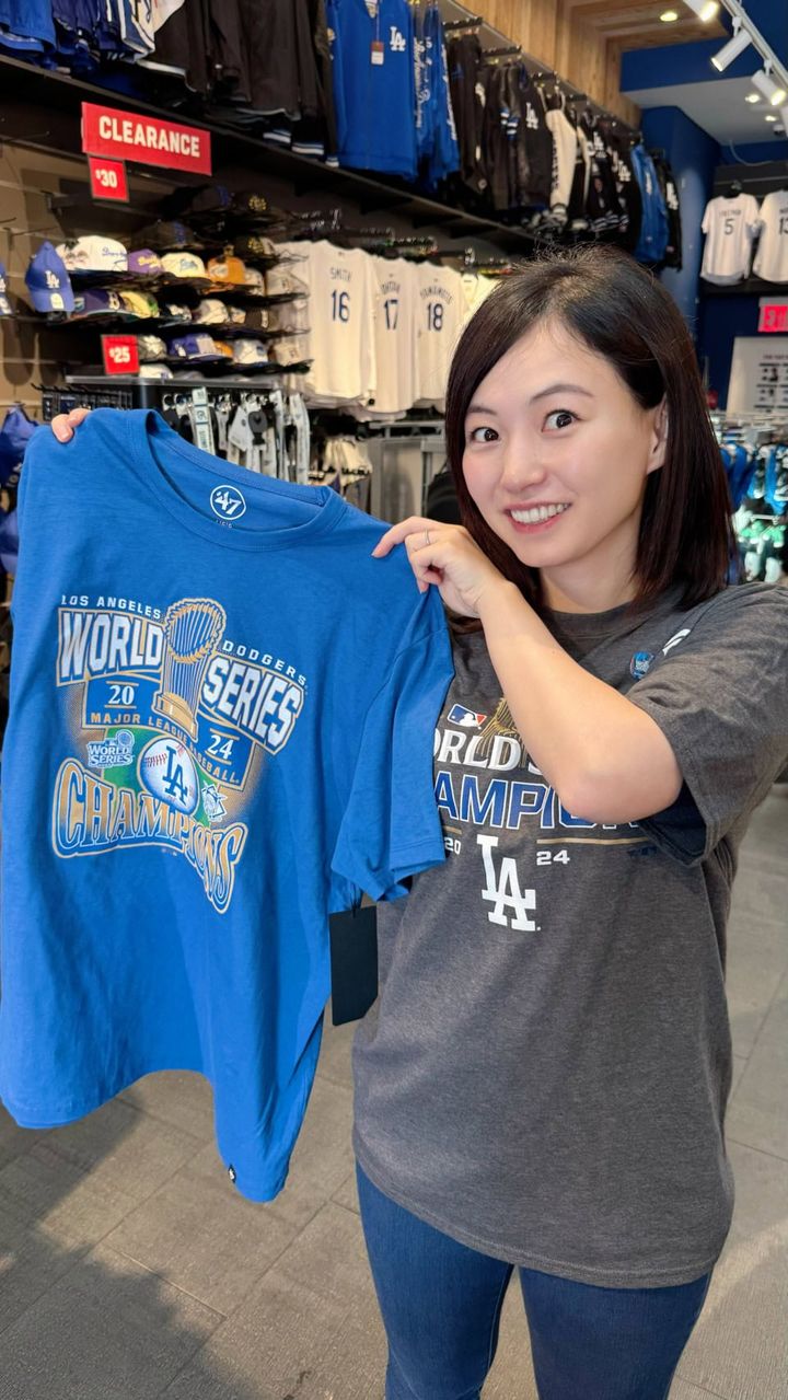 大人気のドジャース大谷翔平選手のグッズは、ロサンゼルスのおみやげの代表格! ドジャースグッズは球場だけでなくモール、空港などでも手に入れることができます。とくにオススメなのが、サンタモニカにある公式ショップ。去年、ドジャースがワールドシリーズで優勝した時には、優勝記念Tシャツが販売されていました。私も友人から連絡があり、何枚か購入しました。