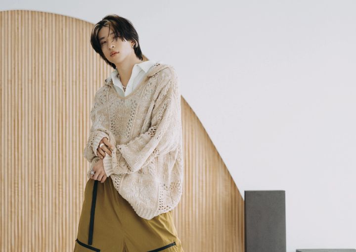 ニット¥74,800/アノーベルデイ、パンツ¥48,400/アーネイ(ともにジョワイユ)シャツ¥38,500/ホロマーケット(スタジオファブワーク)シューズ¥36,300/EARLE(ティーニーランチ)イヤリング¥1,980/キュイー(キュイー)リング[左手]¥22,550/ナラティブ・プラトゥーン、リング[右手]¥27,500/ハーゴ(ともにロール)その他/スタイリスト私物