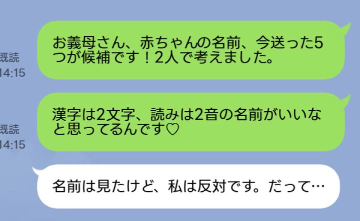 3. 「私は反対よ」わが子の名づけ候補5つを義両親に送信すると…。え?すべて却下!?義母の信じがたい反対理由に絶句!
