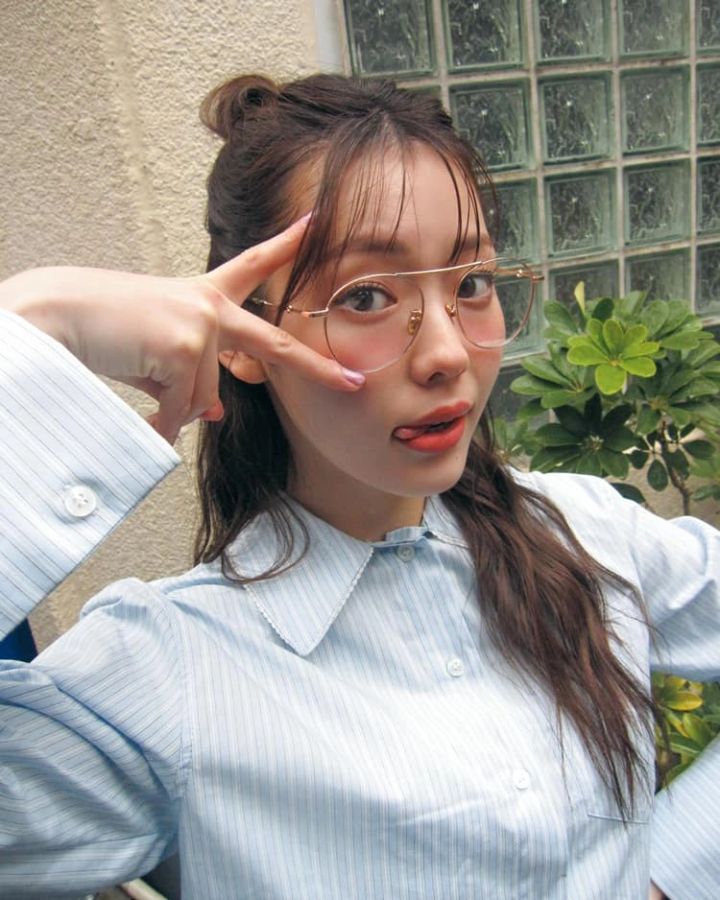 ちょいダサな雰囲気の大きめメガネがお顔の大きさを小さく見せてくれるのもうれしいポイント♡ ぜひ試してみて。