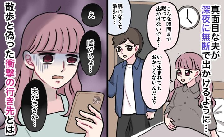 真面目な夫「眠れなくて散歩に…」臨月の私を置いて深夜に外出。散歩は嘘…?思いもよらぬ行き先とは?
