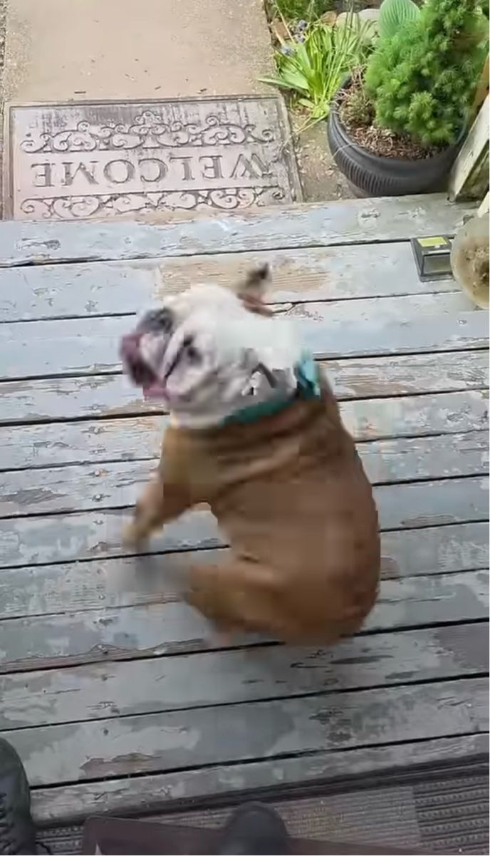 3. スケートボードで遊びたいとアピールするブルドッグ。竜巻のようにその場をクルクル!!【アメリカ・動画】