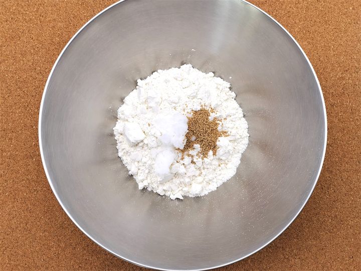1. ボウルに薄力粉、塩、だし粉を入れます。