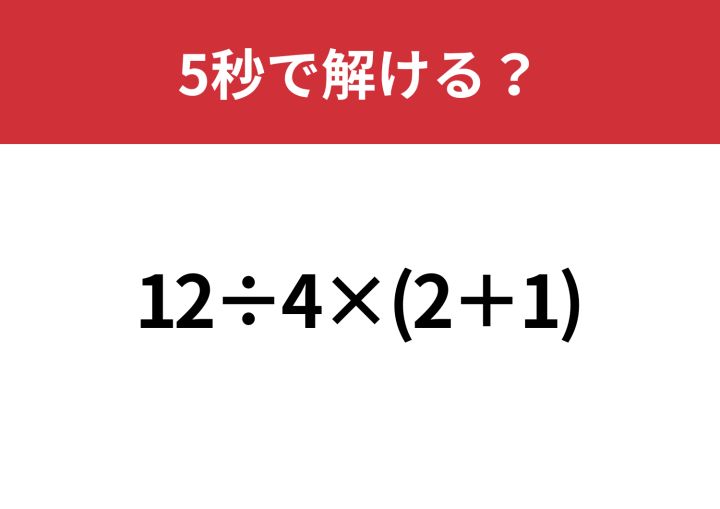 大人なら解けないと恥ずかしいかも!?「12÷4×(2+1)」5秒で解ける?