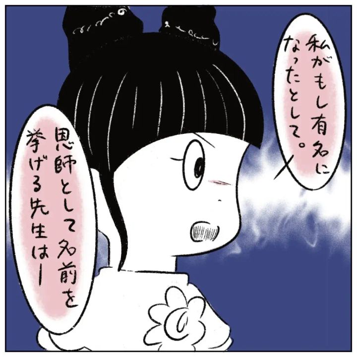 まるさんは性根先生をまっすぐ見ると、冷静に話し始めました。「私がもし有名になったとして、恩師として名前を挙げる先生は・・」