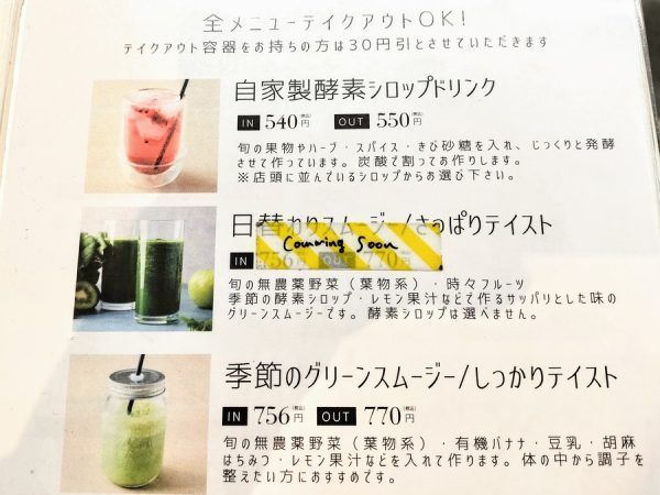 yosagenaさんはドリンクの種類も一味違います。 特におすすめしたいのが、自家製酵素シロップドリンク(540円)です。
