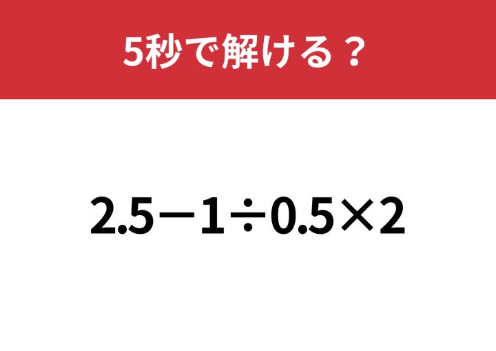 油断してると間違えるかも!?「2.5−1÷0.5×2」5秒で解ける?