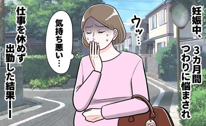 妊娠してから3カ月以上、つわりに悩まされた私。つわりは赤ちゃんからの「休んで」というサインだと思っていたのですが、どうしても外せない仕事で無理をしてしまい……。