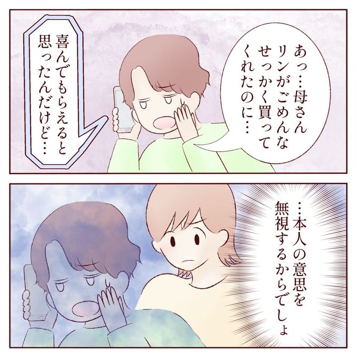 その後、「あっ・・母さん、リンがごめんな。折角買ってくれたのに・・」コウジがそう言う後ろで話を聞いていたひろみさんは、「・・本人の意思を無視するからでしょ」と呆れたように見つめます。