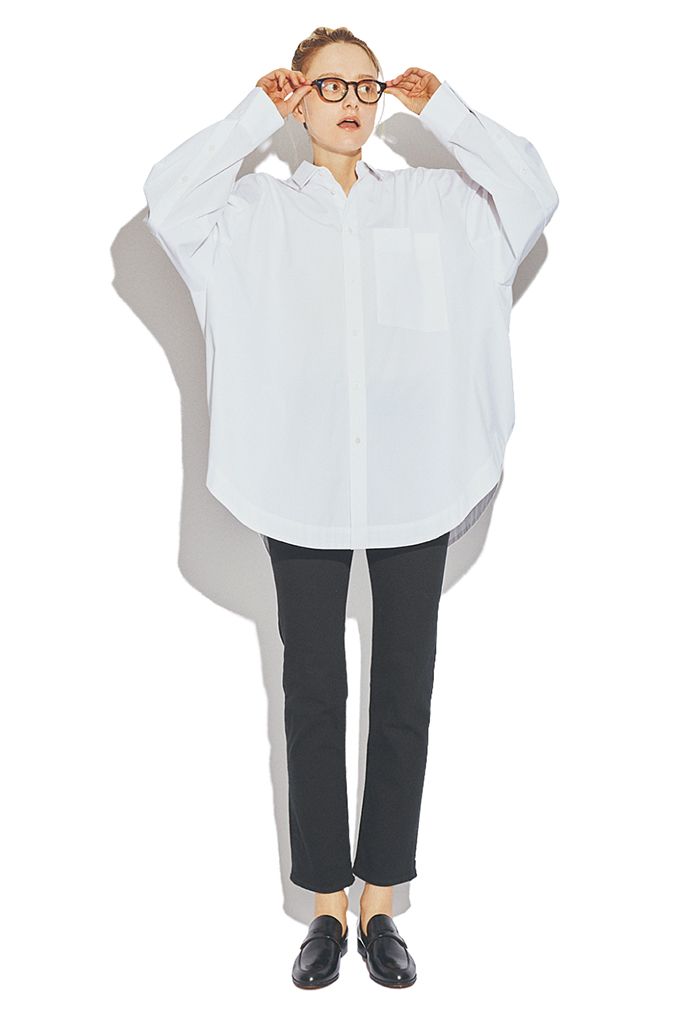知性や清潔感、好感度を出せるものとして持っておきたいクリーンな白シャツ。1枚で着ることも増えるこれからは、それだけで洒落感が出せる「形」に着目を。飾りを足すよりひかえめに映りながら、シンプル以上へと近づける。