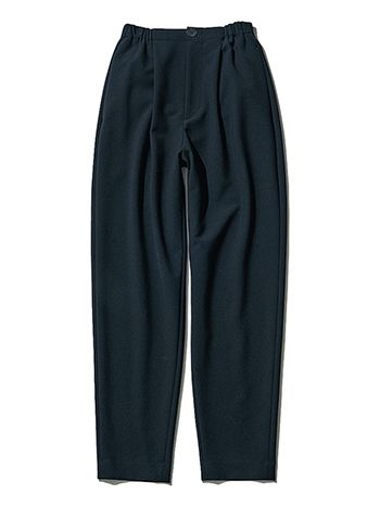 美脚なことは大前提。スタイルアップや端正な見た目づくりに欠かせない黒パンツも「締めつけずに動きやすい」ことも条件のひとつ。さらに脚線を拾いにくいほどよい厚みの生地を使用した、ストレスなく、なおかつ脚線を美しく見せる補正力にも優れた新作。