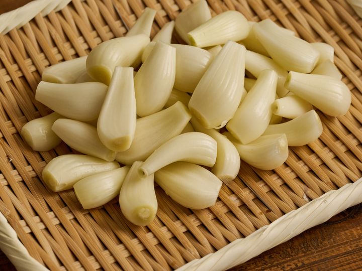 小ぶりで白くつやのある見た目のらっきょうは、シャキッとした歯ごたえと、あとを引く独特の風味が特徴です。
