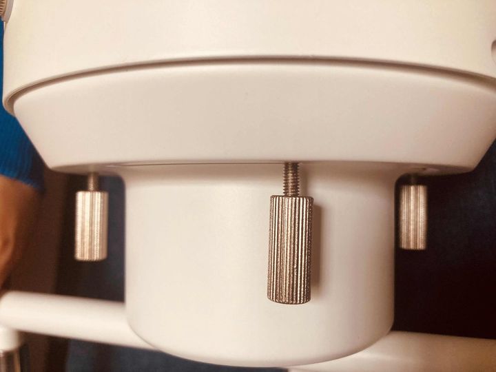 まずライトの根本部分にある4ヶ所の固定ねじをはずします。照明本体は約2kgなので、すっと持ち上げることができました。