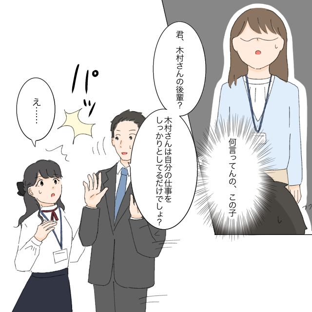 「何言ってんの、この子」と唖然としていると、「君、木村さんの後輩?木村さんは、自分の仕事をしっかりとしてるだけでしょ?」そう言って足立さんからサッと離れて妹尾さんが言うと、「え・・」自分が突き放されたことに足立さんは驚きました。
